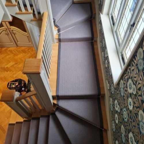 This sophisticated carpet teamed with the customers own stair rods has created an amazing result.