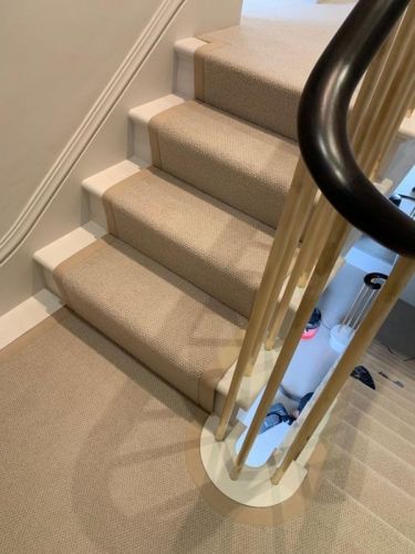Beautiful staircase recently fitted in a Victorian property in #Pimlico #kersaintcobb #wool #carpetexpress #victorianproperty #staircaserunner #carpets